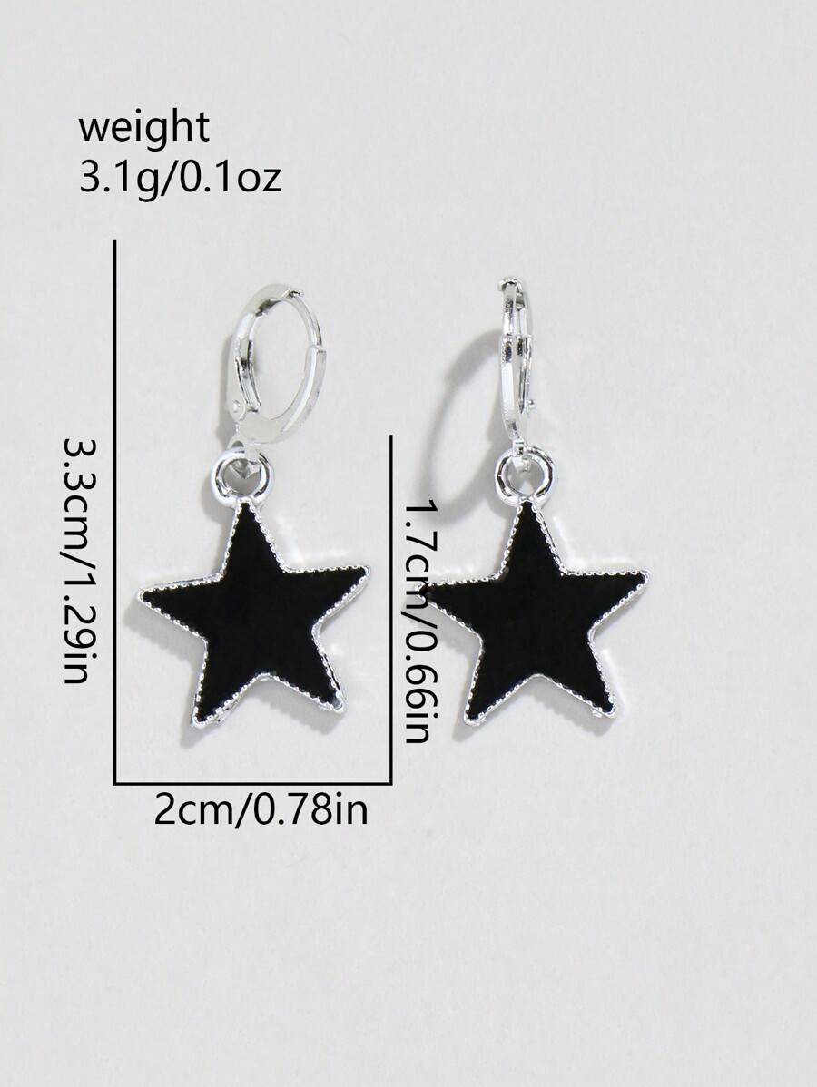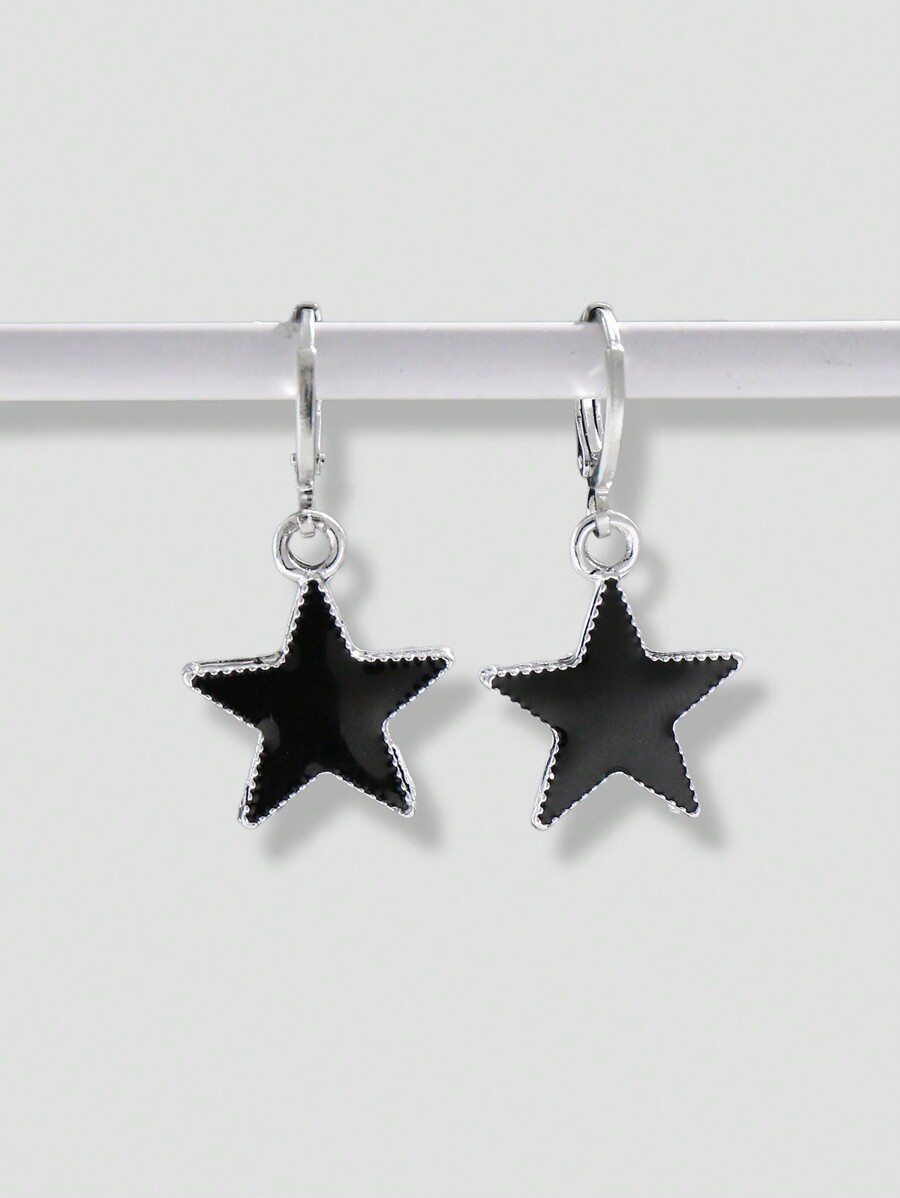 Street Life 1pair Gothic Style Stars Drop Earrings, Black & Silver Color, Suitable For Women's Daily Wear And Holiday Gifts