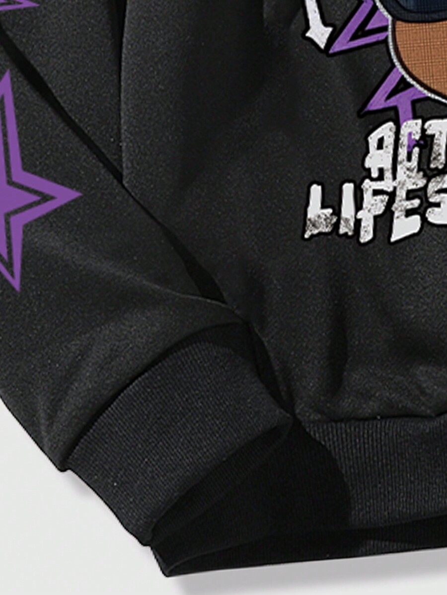 Street Life 2pcs Men's Printed Hoodie Sweatshirt And Pants Tracksuit Set