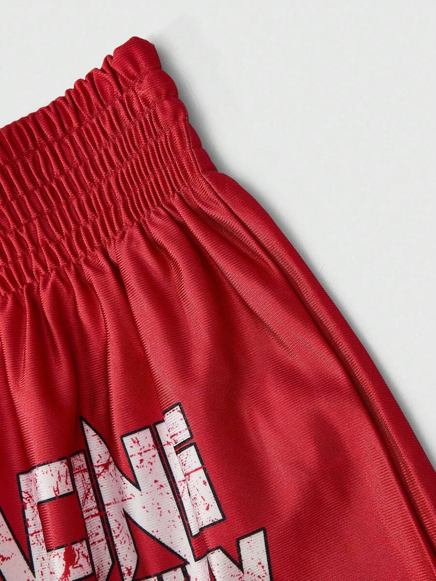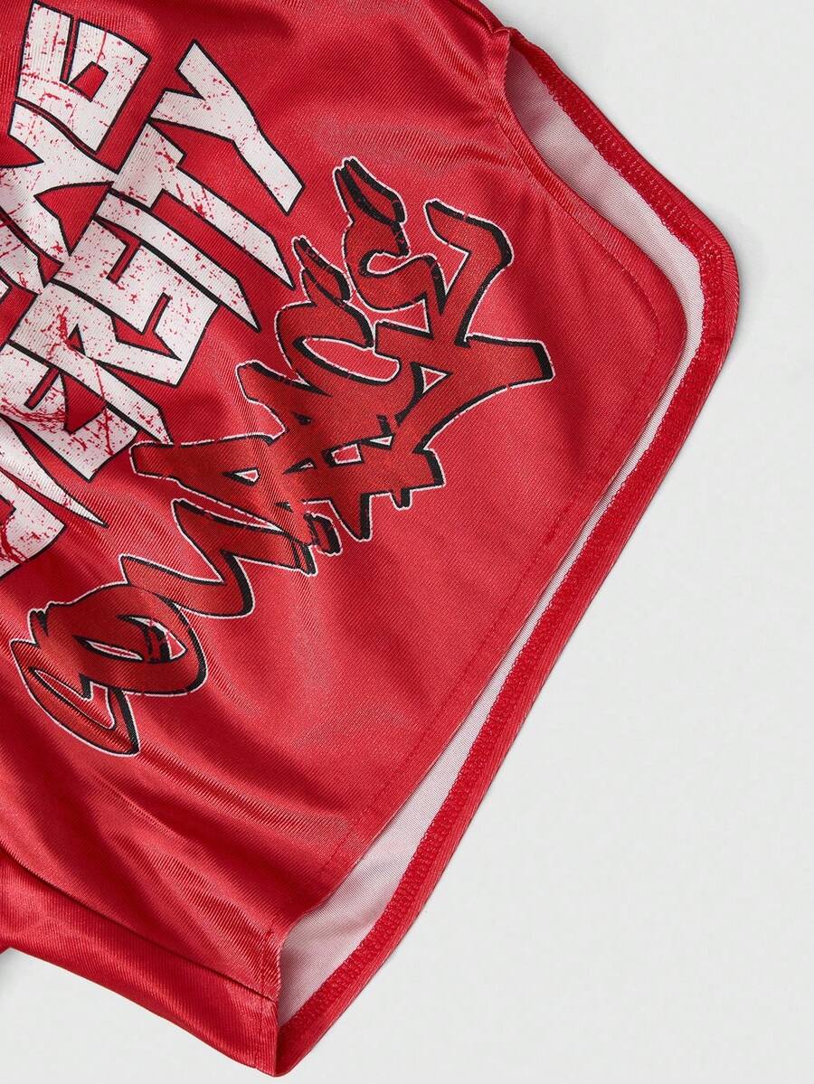 Street Life 2pcs Street Style Boxing Sports Character Print Vest Suit