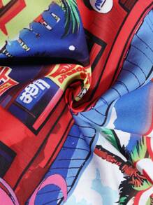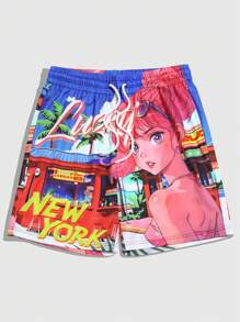 Anime Character Printed Casual Shorts For Men, Summer Vacation