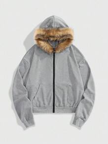 Casual Fashion Fluffy Collar Versatile Men's Zip-Up Hoodies , Fall Winter