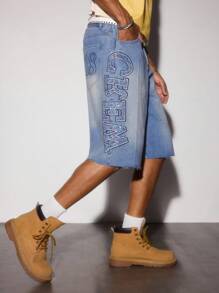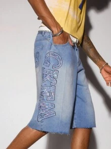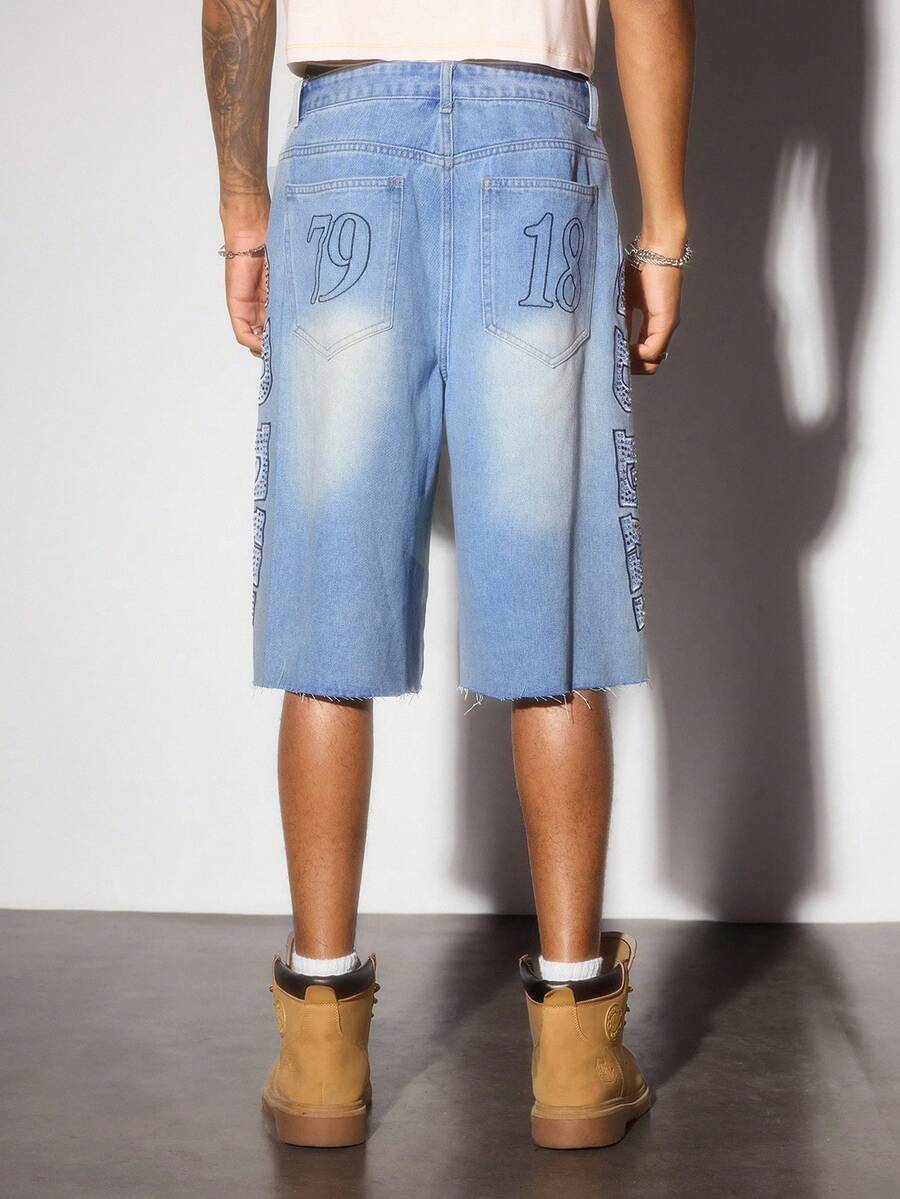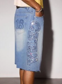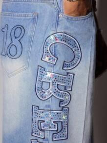 Street Life Casual Fashion Versatile Summer Button-Up Rhinestone Men's Denim Shorts