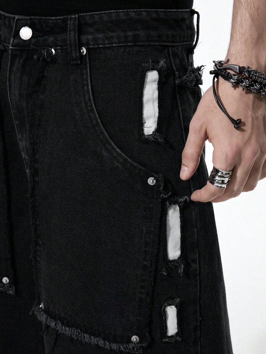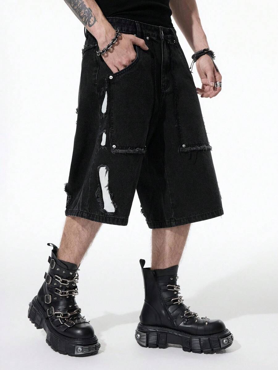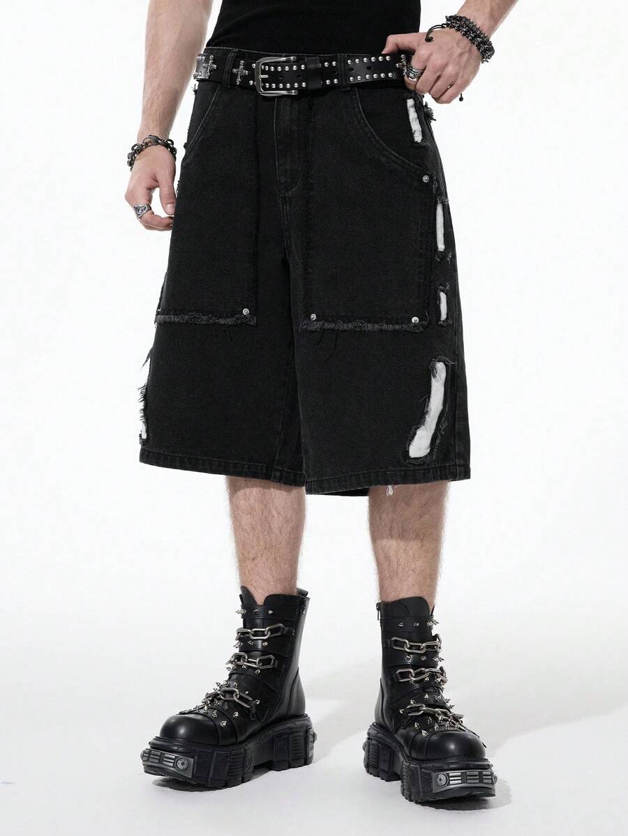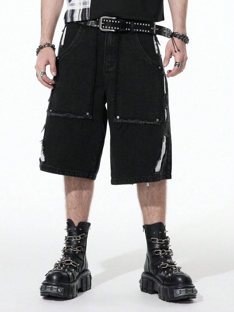 Street Life Casual Summer Button Pocket Wide Leg Men Denim Shorts