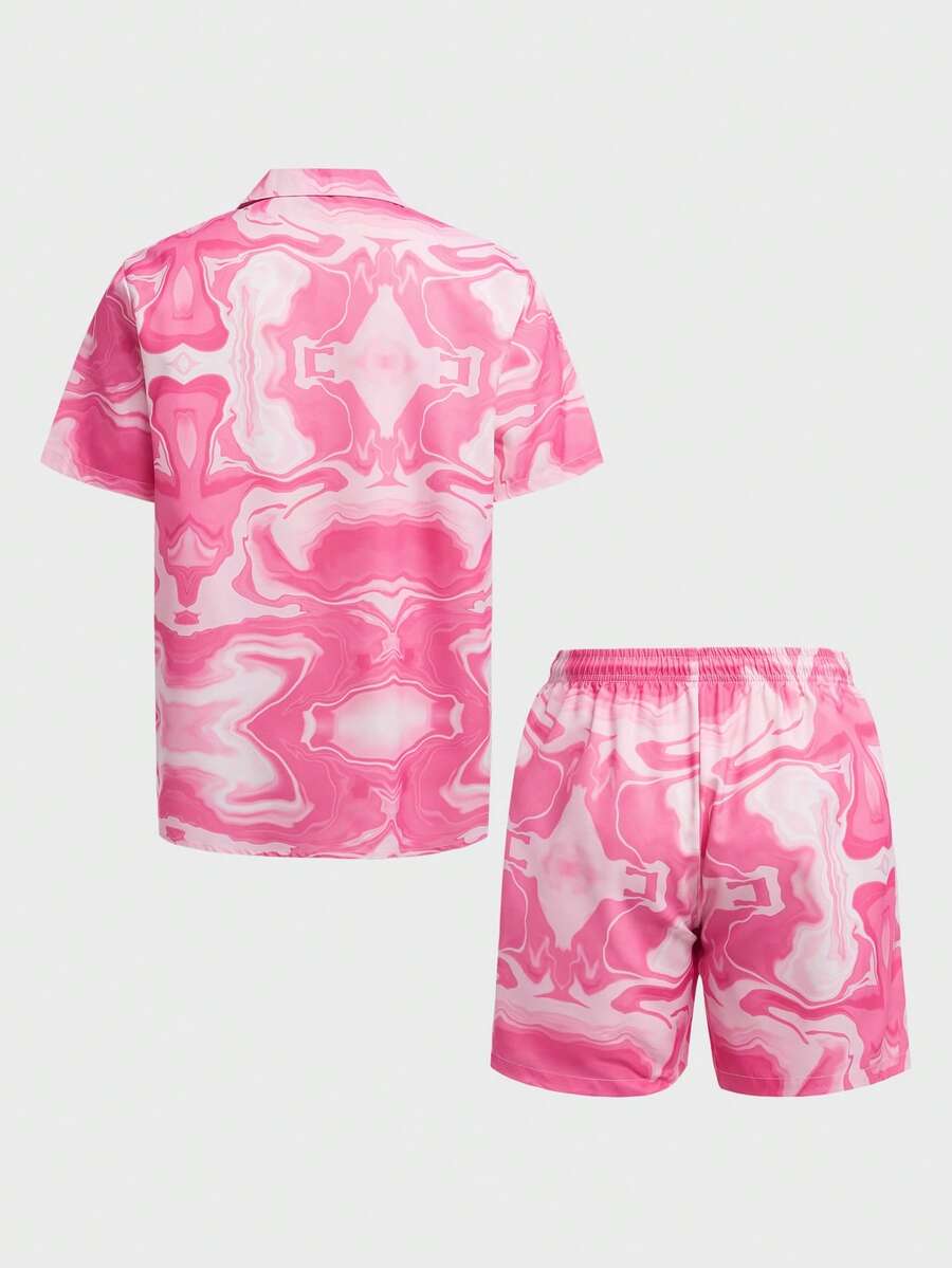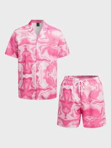 Street Life Guys Allover Print Shirt & Drawstring Waist Shorts