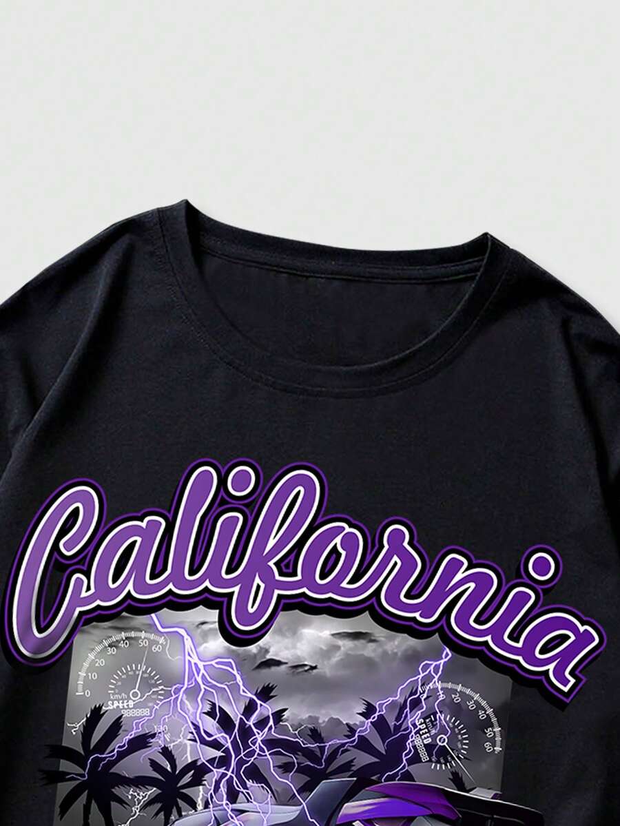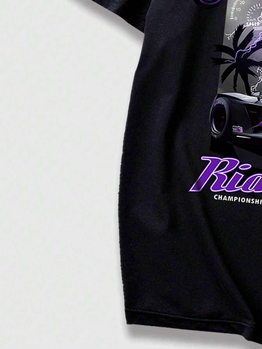 Street Life Guys Car Letter Graphic Tee & Drawstring Waist Shorts