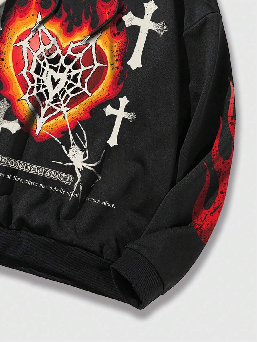Street Life Guys Cross & Fire Print Drawstring Hoodie