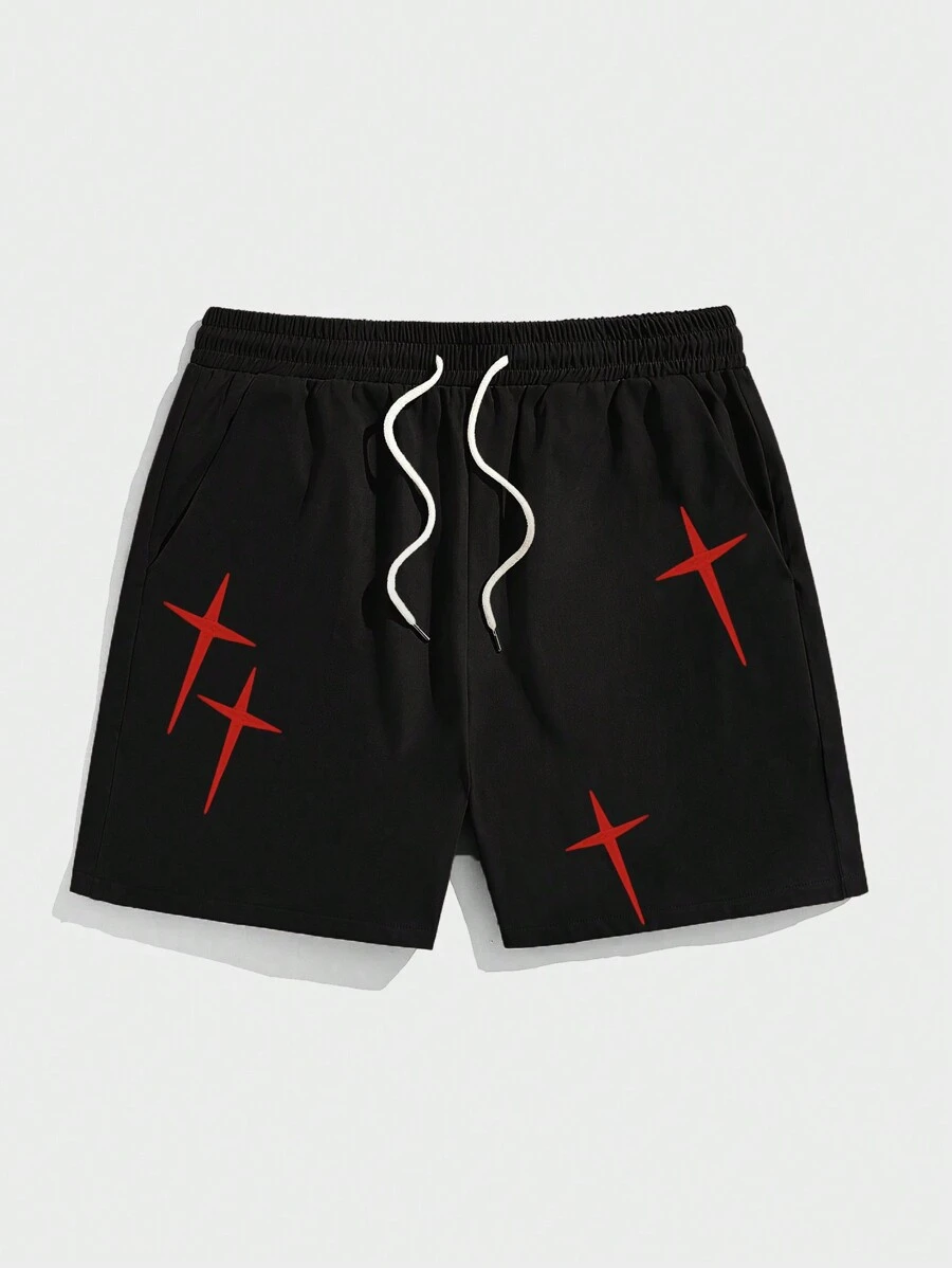 Street Life Guys Cross Print Drawstring Waist Shorts