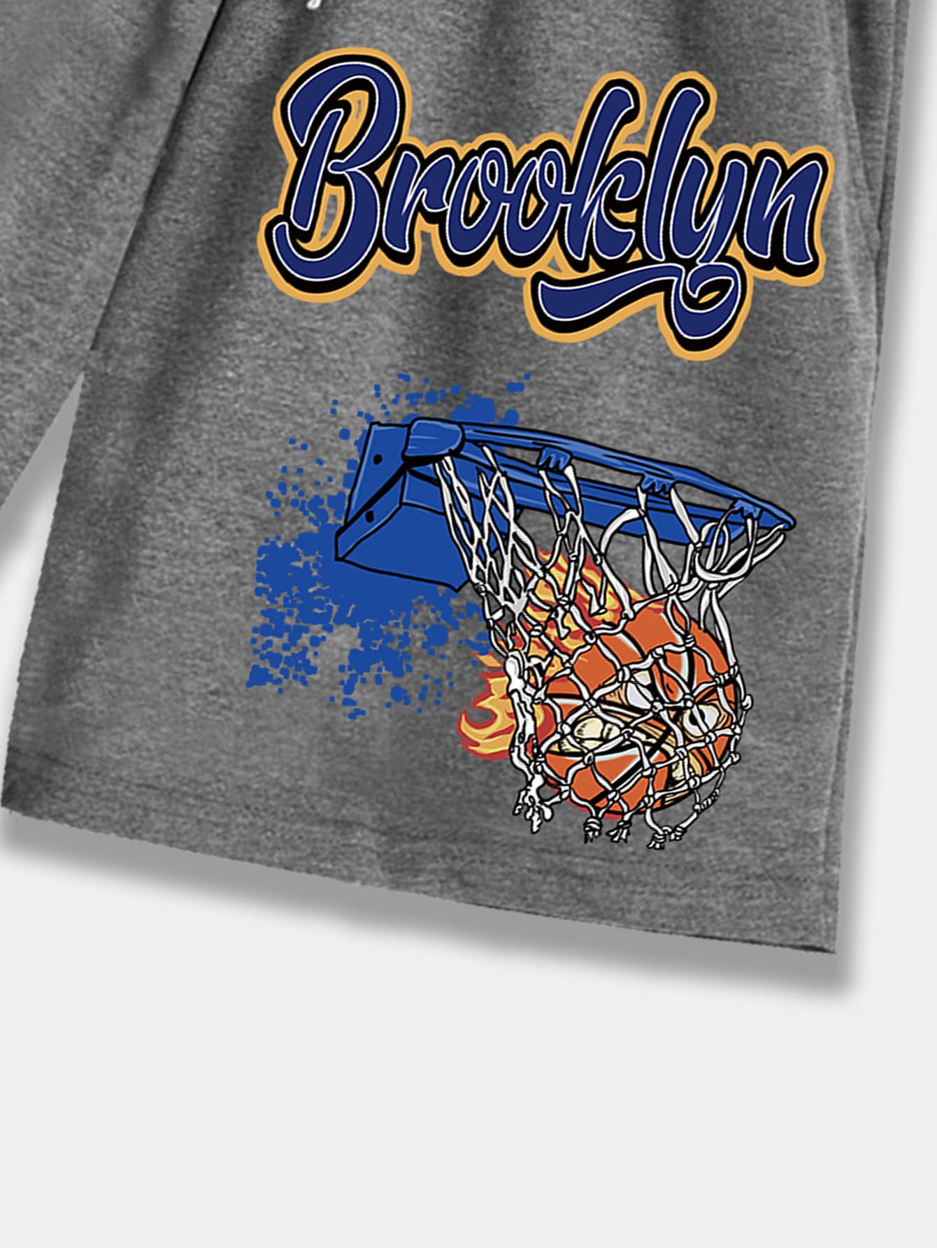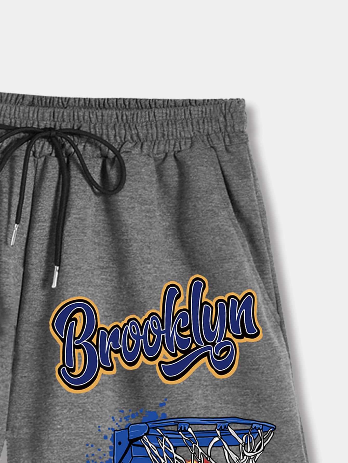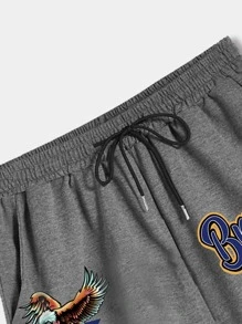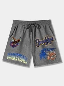 Street Life Guys Eagle Letter Graphic Drawstring Waist Shorts