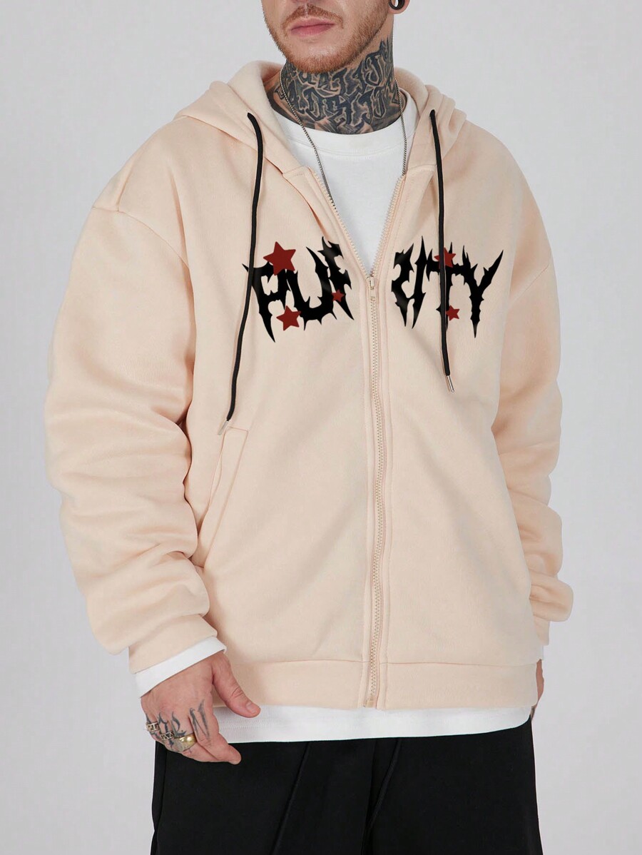 Street Life Guys Geo Letter Graphic Zip Up Drawstring Thermal Hoodie