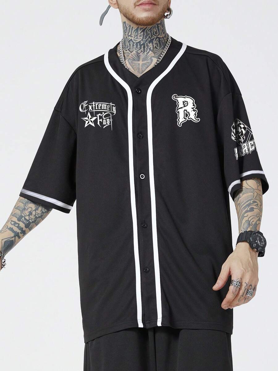 Street Life Guys Letter Graphic Contrast Binding Shirt