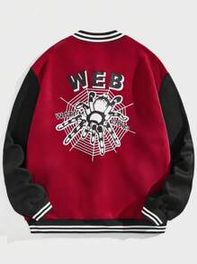 Street Life Guys Letter & Spider Graphic Striped Trim Drop Shoulder Bomber Jacket