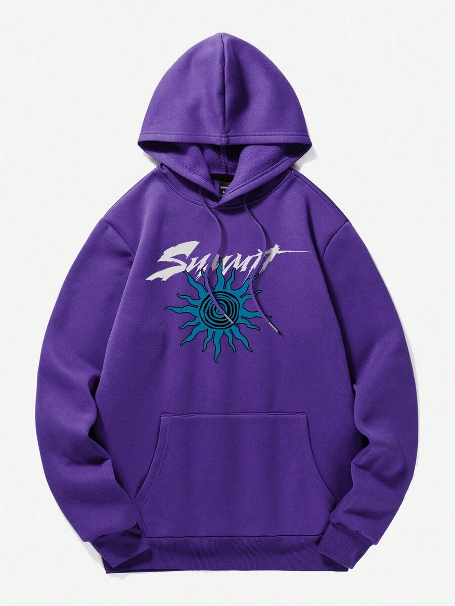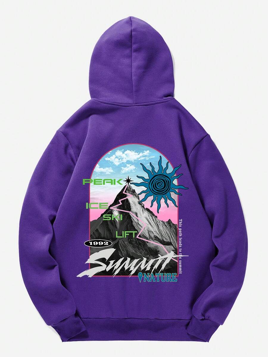 Street Life Guys Mountain & Slogan Graphic Kangaroo Pocket Drawstring Hoodie
