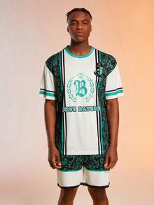 Street Life Guys Paisley Letter Graphic Striped Trim Tee & Shorts