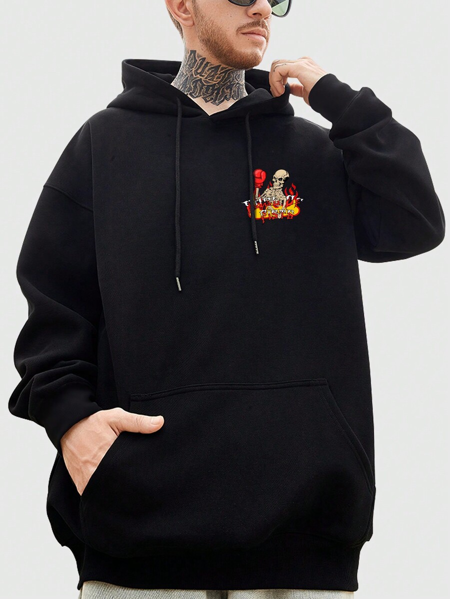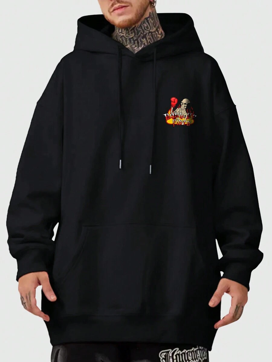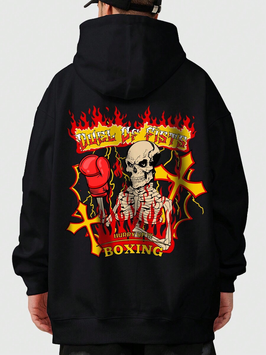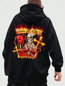 Street Life Guys Skeleton & Letter Graphic Drop Shoulder Drawstring Hoodie
