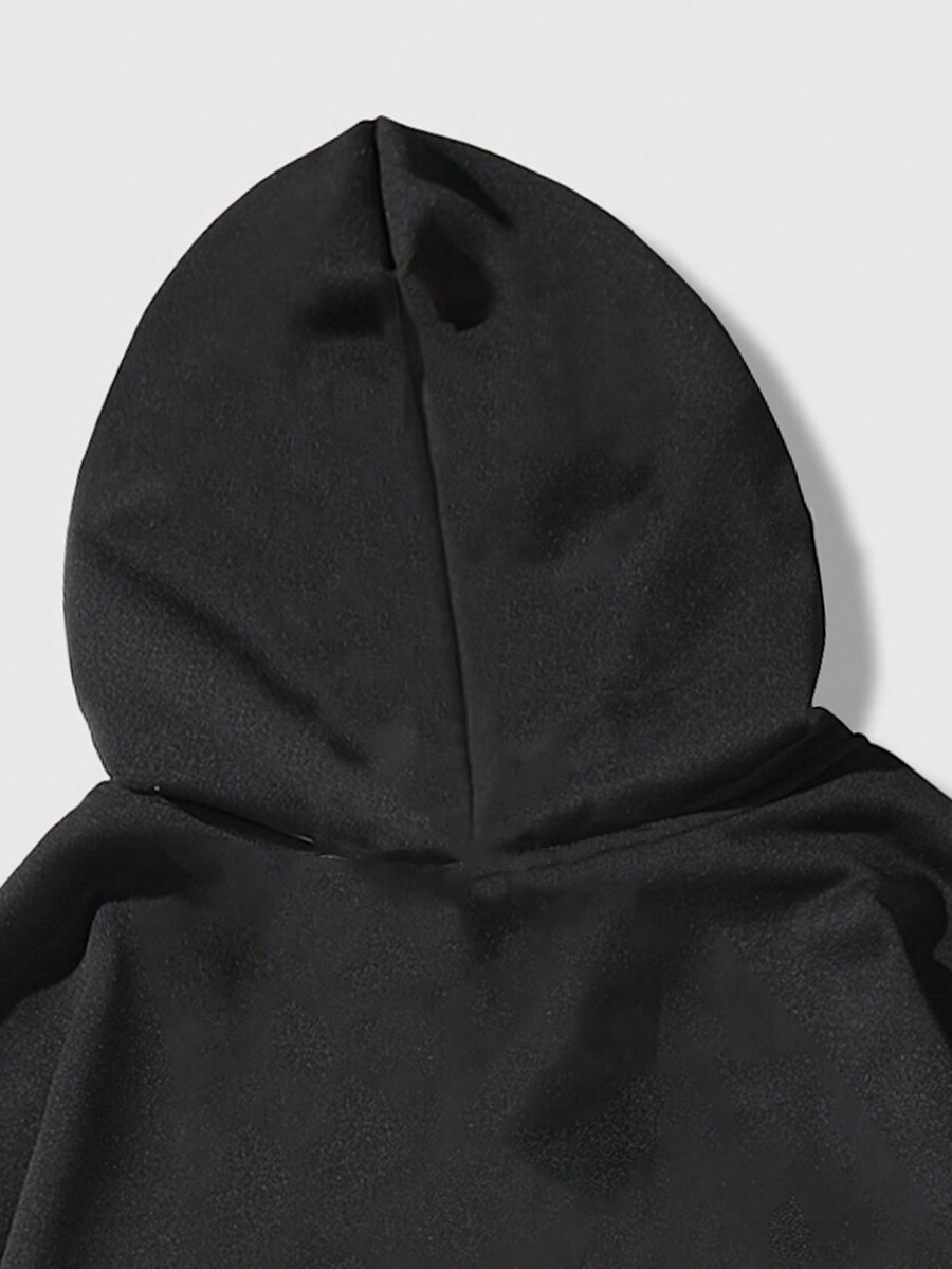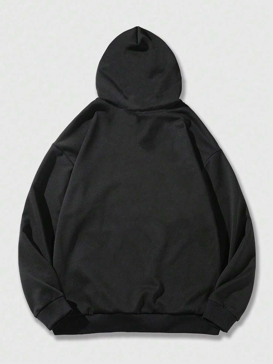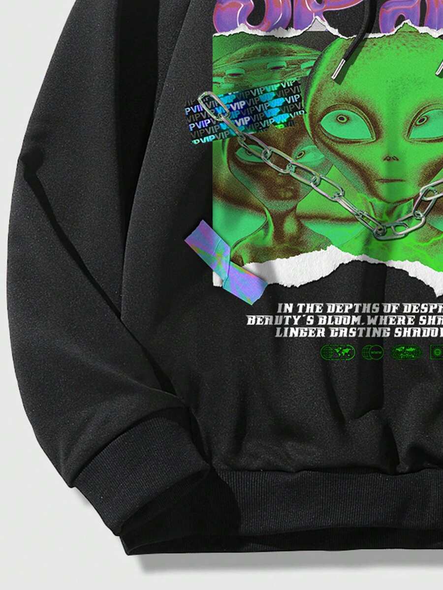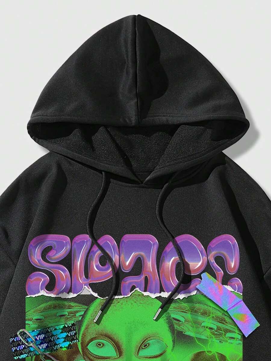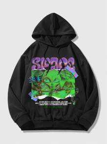 Street Life Guys Slogan & Cartoon Graphic Drop Shoulder Drawstring Hoodie