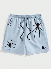 Street Life Guys Spider Print Drawstring Waist Shorts