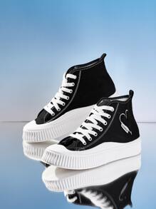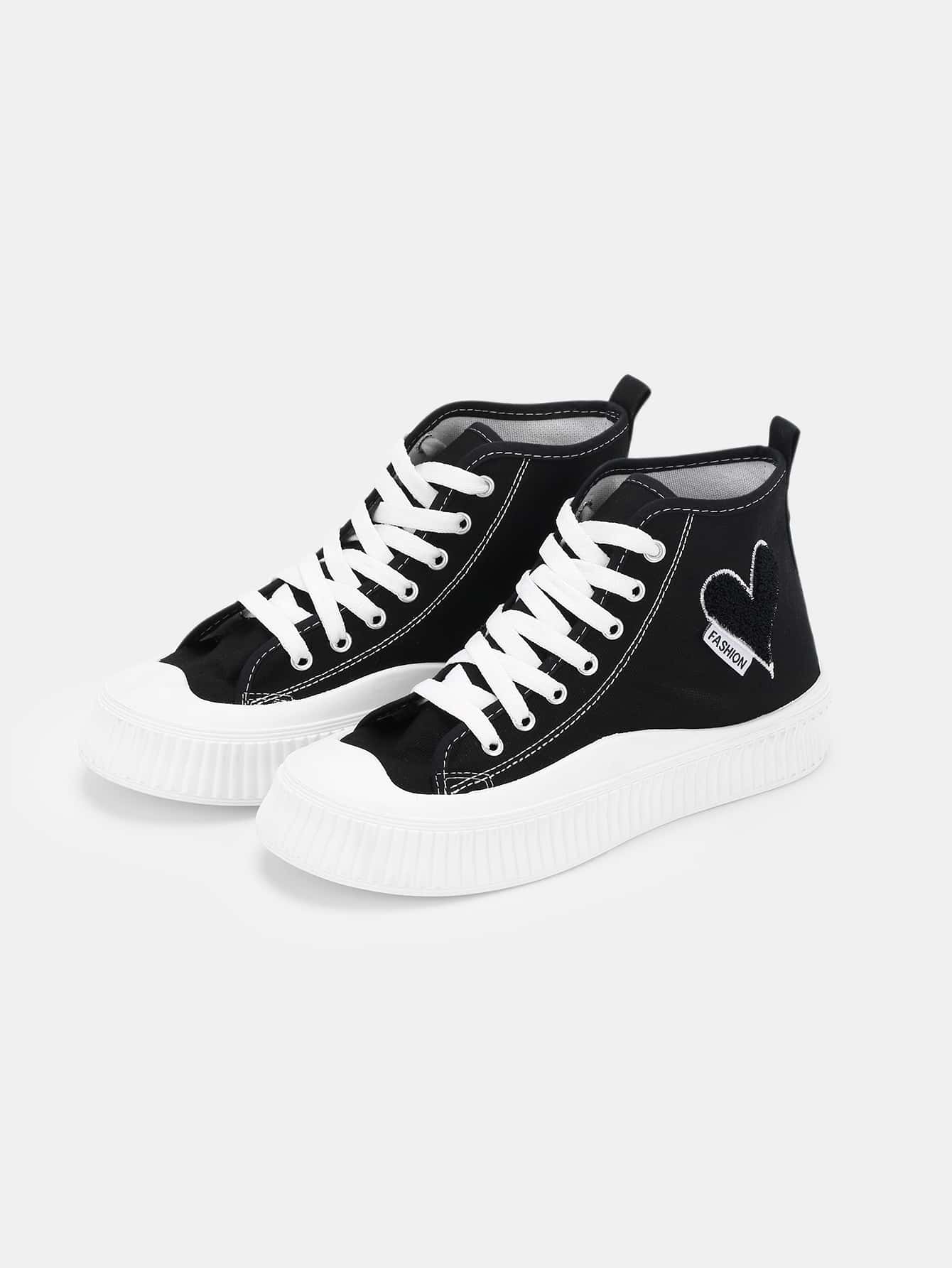 Street Life Heart Embroidery Canvas Shoes