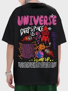 Street Life Men Cartoon & Slogan Graphic Y2k T-Shirt, School