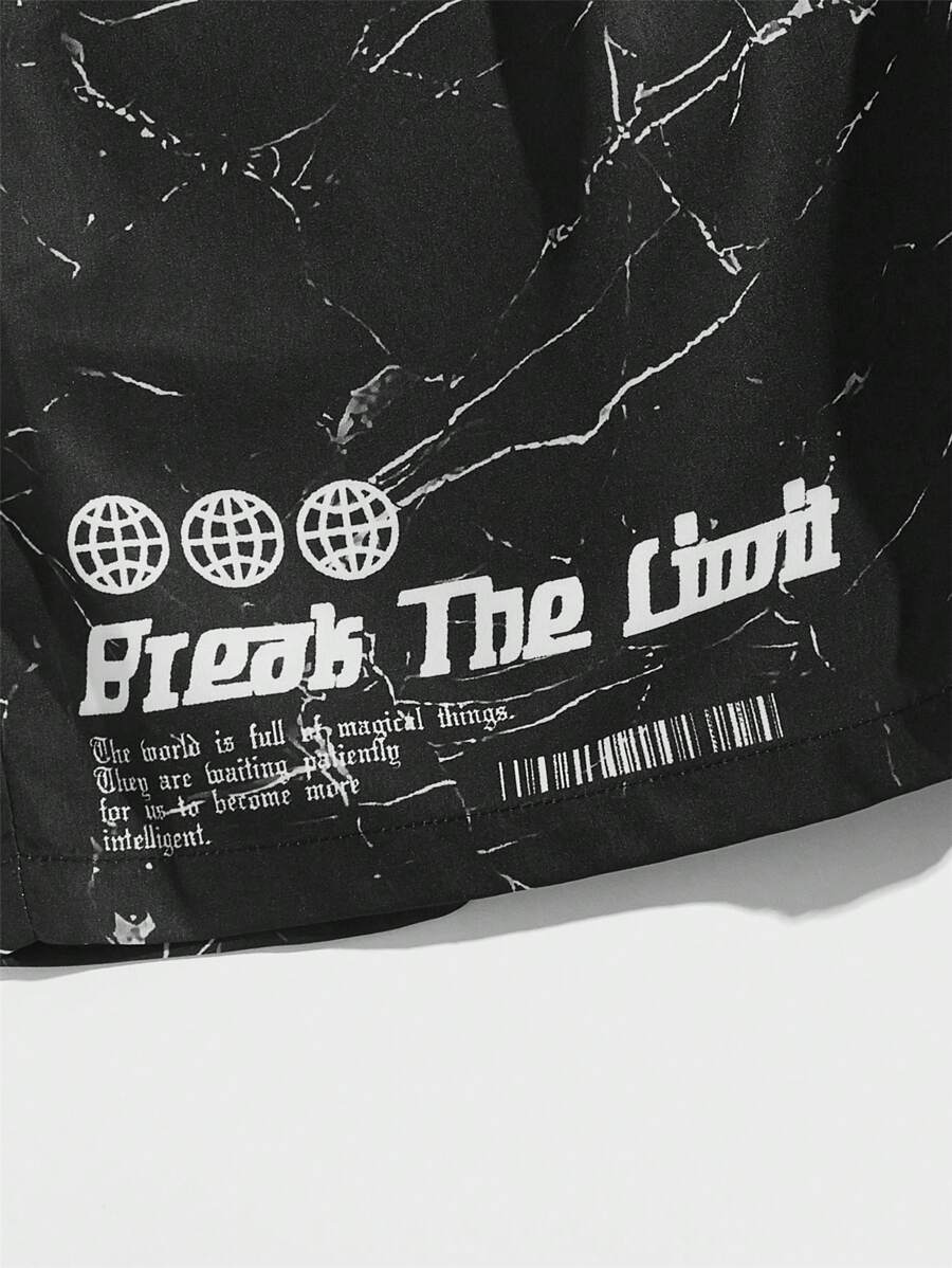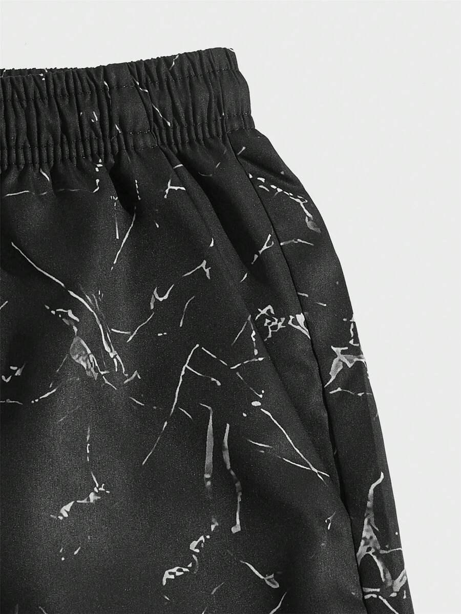 Street Life Men Drawstring Waist Slogan Graphic Marble Print Shorts, School