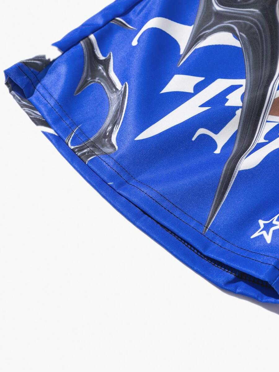 Street Life Men Five-Pointed Star Slogan Print Woven Shorts, Suitable For Daily Wear In Spring And Summer