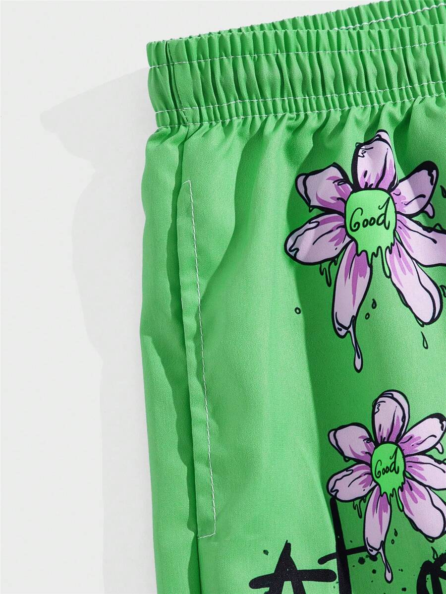 Street Life Men Floral & Letter Graphic Drawstring Waist Shorts, School