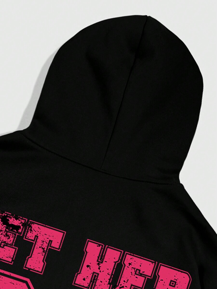 Street Life Men Hooded Alphanumeric Printed Long Sleeve Daily Casual All-Match Sweatshirt Sweatshirt
