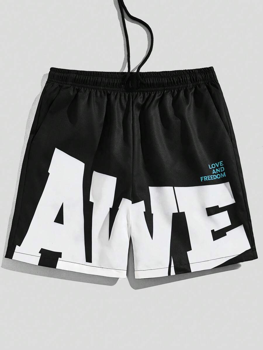 Street Life Men Letter Graphic Drawstring Waist Basketball Shorts, School