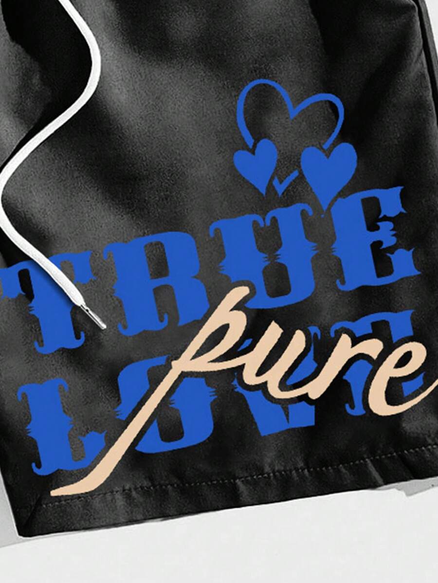 Street Life Men Letter & Skull Print Drawstring Waist Shorts, School