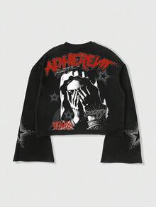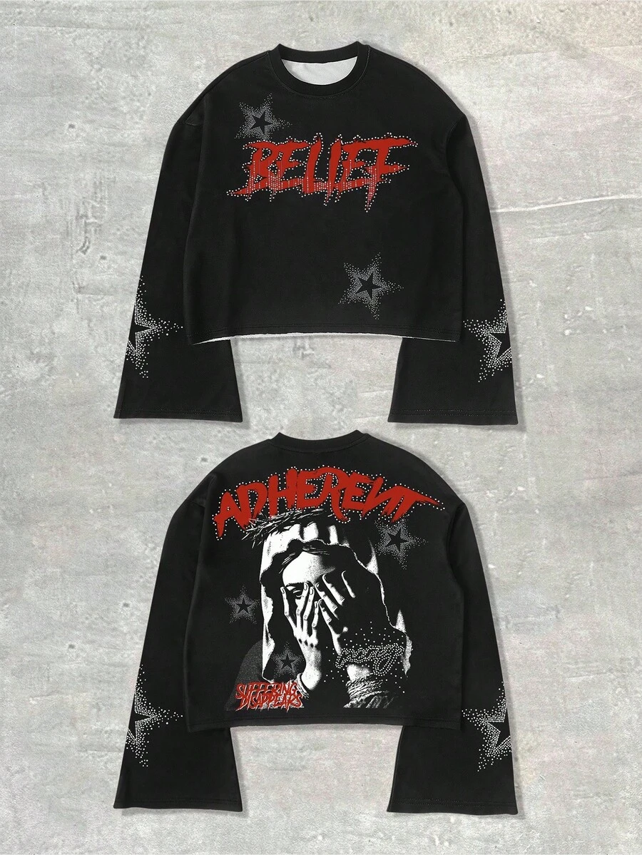 Street Life Men Minimalist Printed Crew Neck Long Sleeve T-Shirt, Fall
