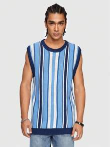 Street Life Men Round Neck Knitted Vertical Striped Summer Sleeveless Sweater Vest