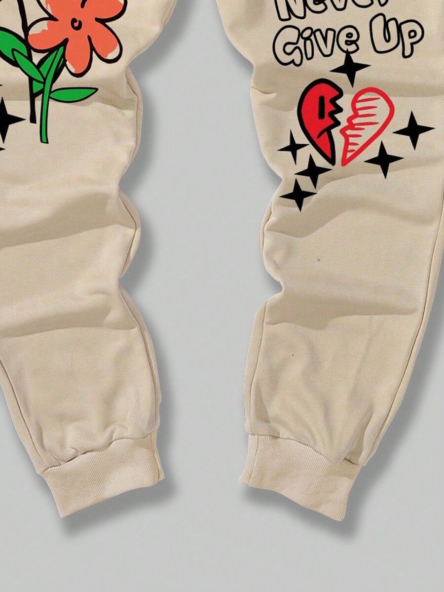 Street Life Men Slogan & Floral Print Drawstring Waist Sweatpants