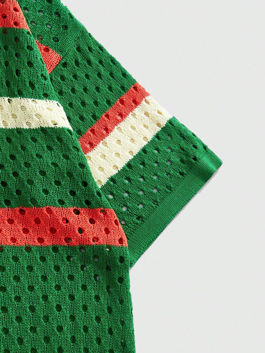 Casual Men Spring/Summer New Fashion Color Blocking Knit Short Sleeve Top, Vacation