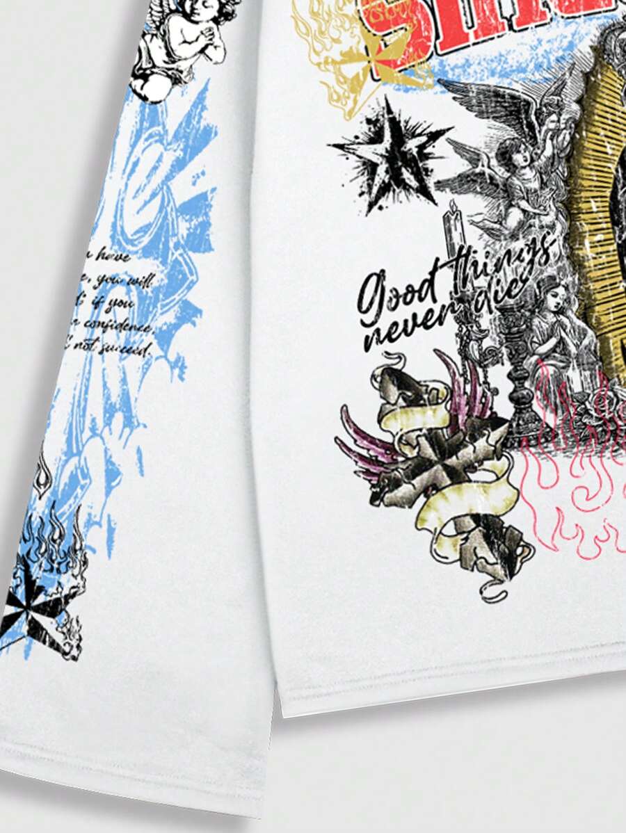 Street Life Men Street Graphic Print Pullover Hoodie Sweatshirt, Suitable For Everyday Wear, Spring & Summer