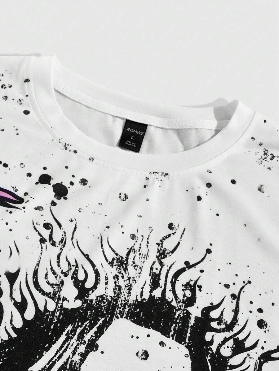 Street Life Men Summer Casual Oversized Short Sleeve Y2k T-Shirt With Character And Letter Print