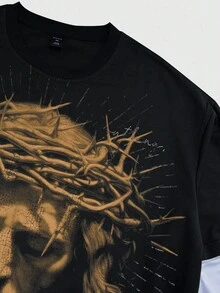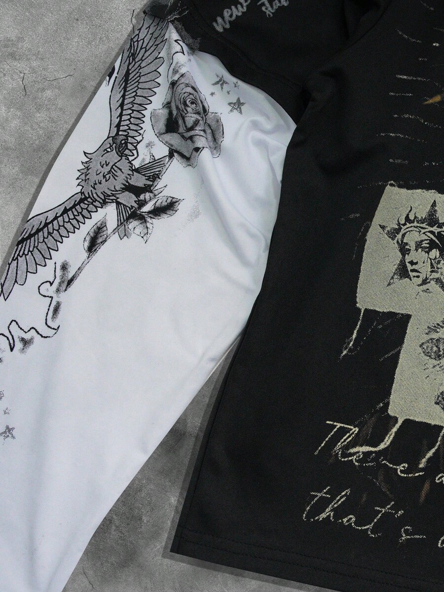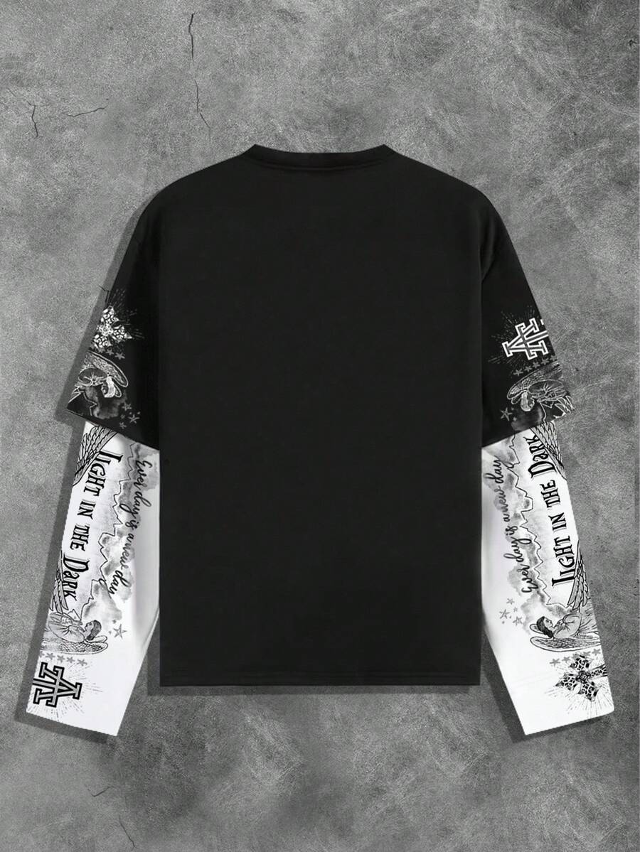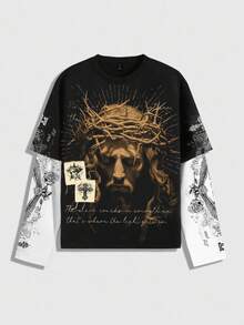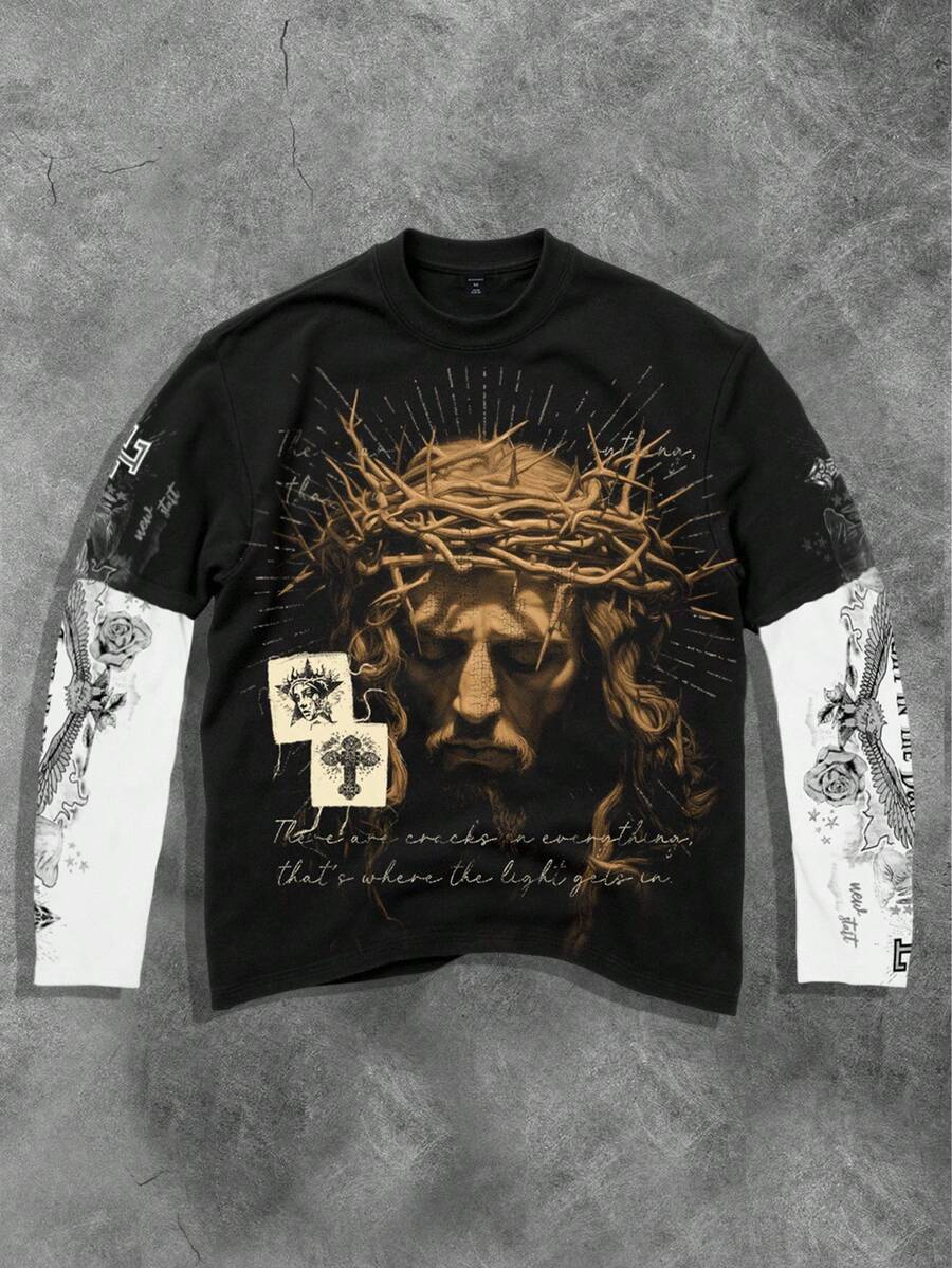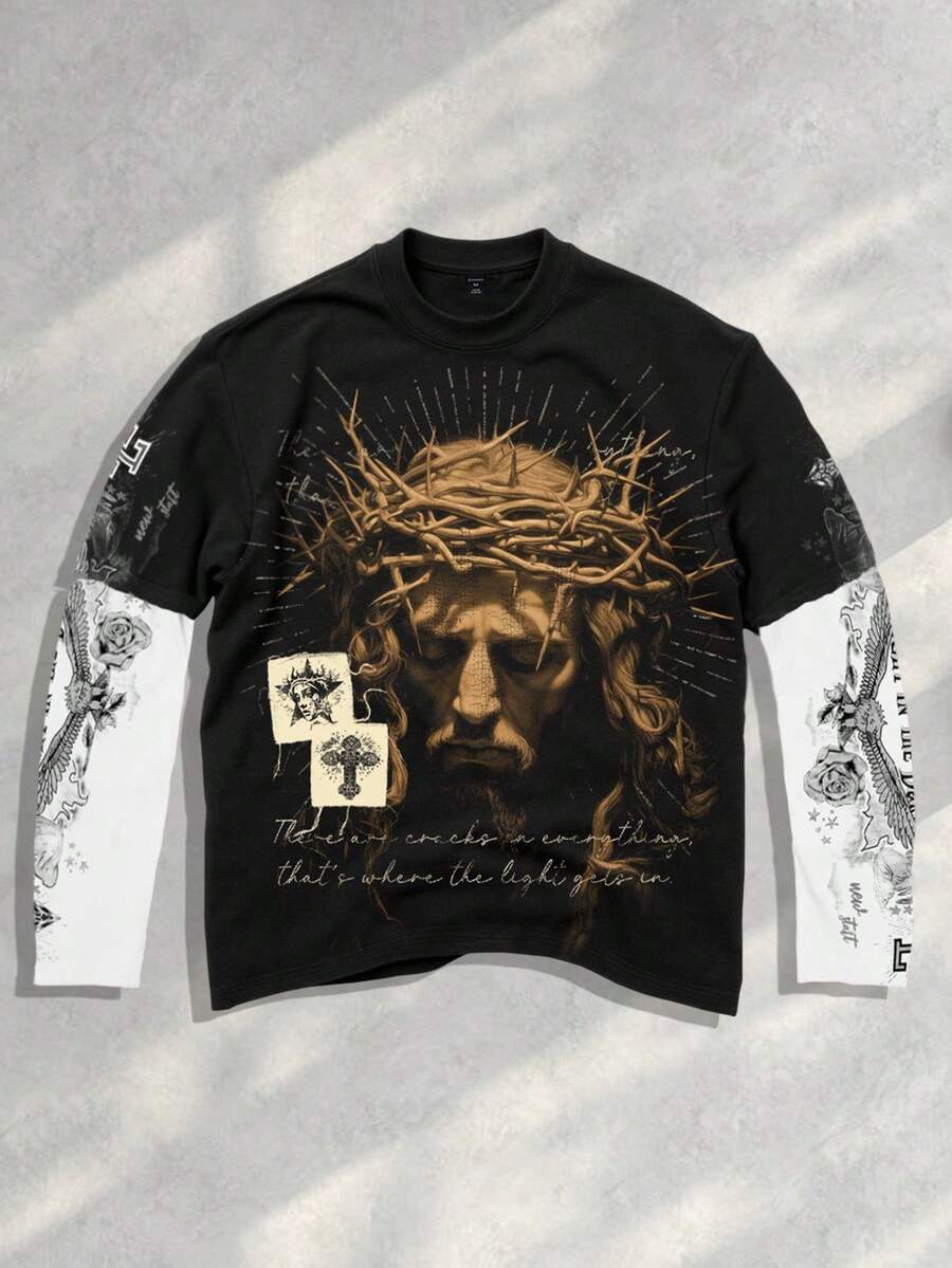 Street Life Men's 2 In 1 Long Sleeve Jesus T-Shirt, Punk Street Style Top, Fall