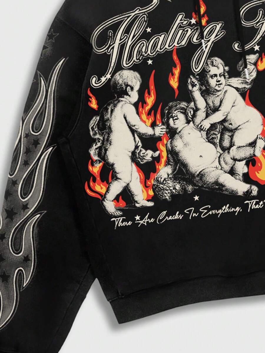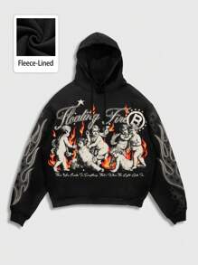 Street Life Men's Angel And Flame Print Casual Long Sleeve Hoodie Sweatshirt