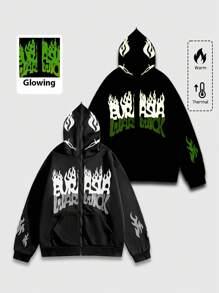 Street Life Men's Autumn Glow-In-The-Dark Letter Print Zipper Front Casual Hoodie Sweatshirt