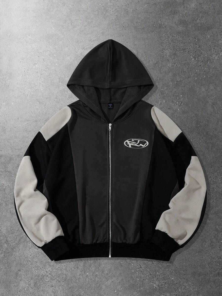 Street Life Men's Autumn/Winter Geometric Print Patchwork Zip-Up Hoodie Sweatshirt