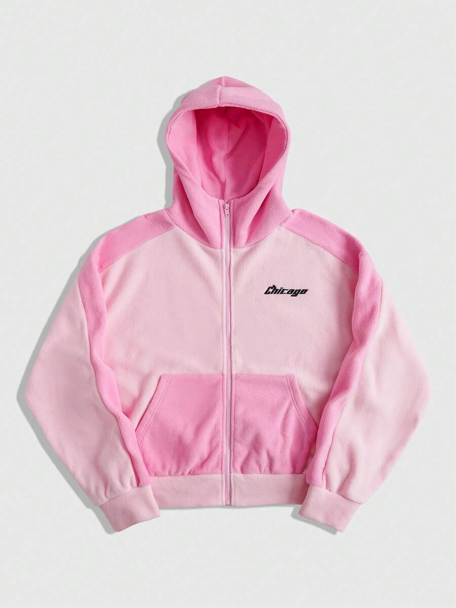 Street Life Men's Autumn/Winter Sherpa Letter Graphic Zip-Up Casual Hoodie