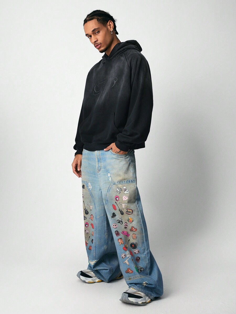 Street Life Men's Bleached Zebra Print Short Hooded Sweatshirt, Street Style