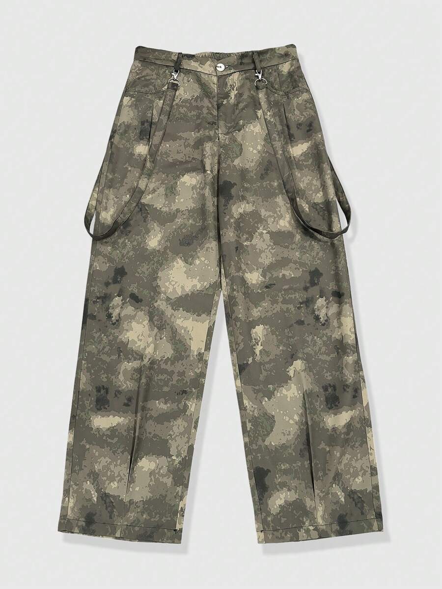 Street Life Men's Camouflage Print Patchwork Webbing Loose Wide Leg Pants