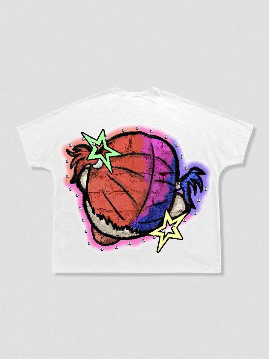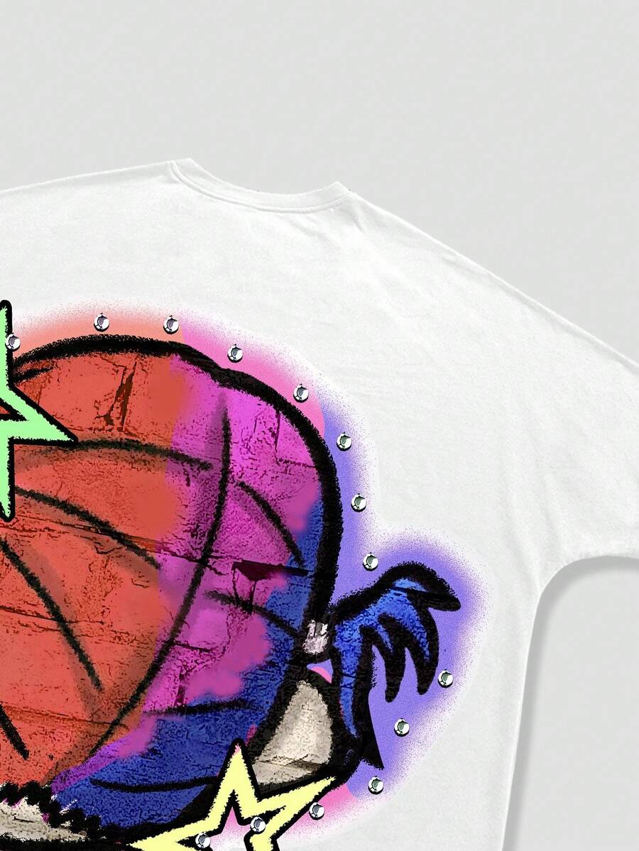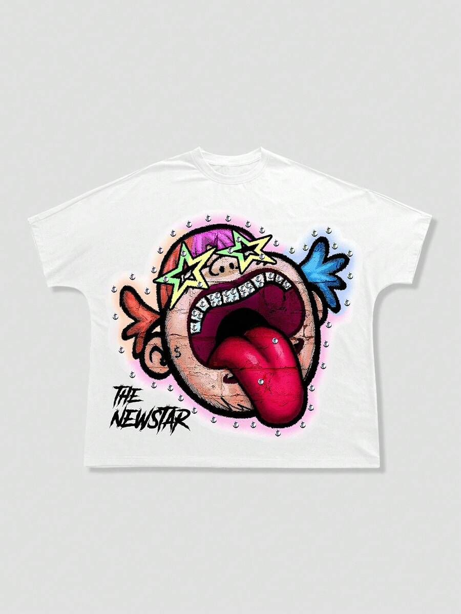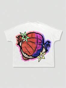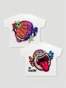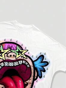 Street Life Men's Cartoon Graffiti Print Round Neck Short Sleeve T-Shirt