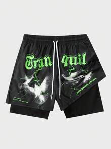 Street Life Men's Casual 2 In 1 Drawstring Waist Letter Print Shorts, School