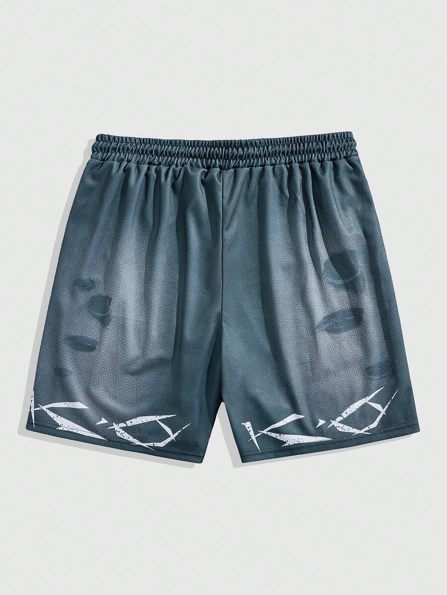 Street Life Men's Casual Boxing Character Print Dropped Shoulder Loose T-Shirt & Drawstring Waist Shorts Set