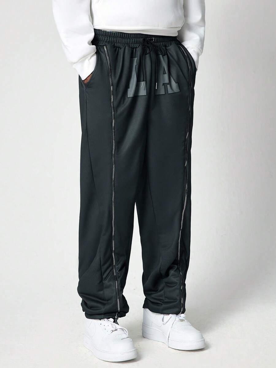 Street Life Men's Casual Colorblock Star Print Zipper Design Drawstring Waist Baggy Sweatpants