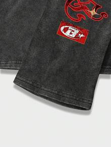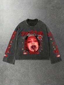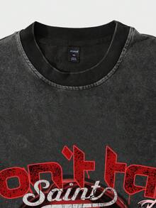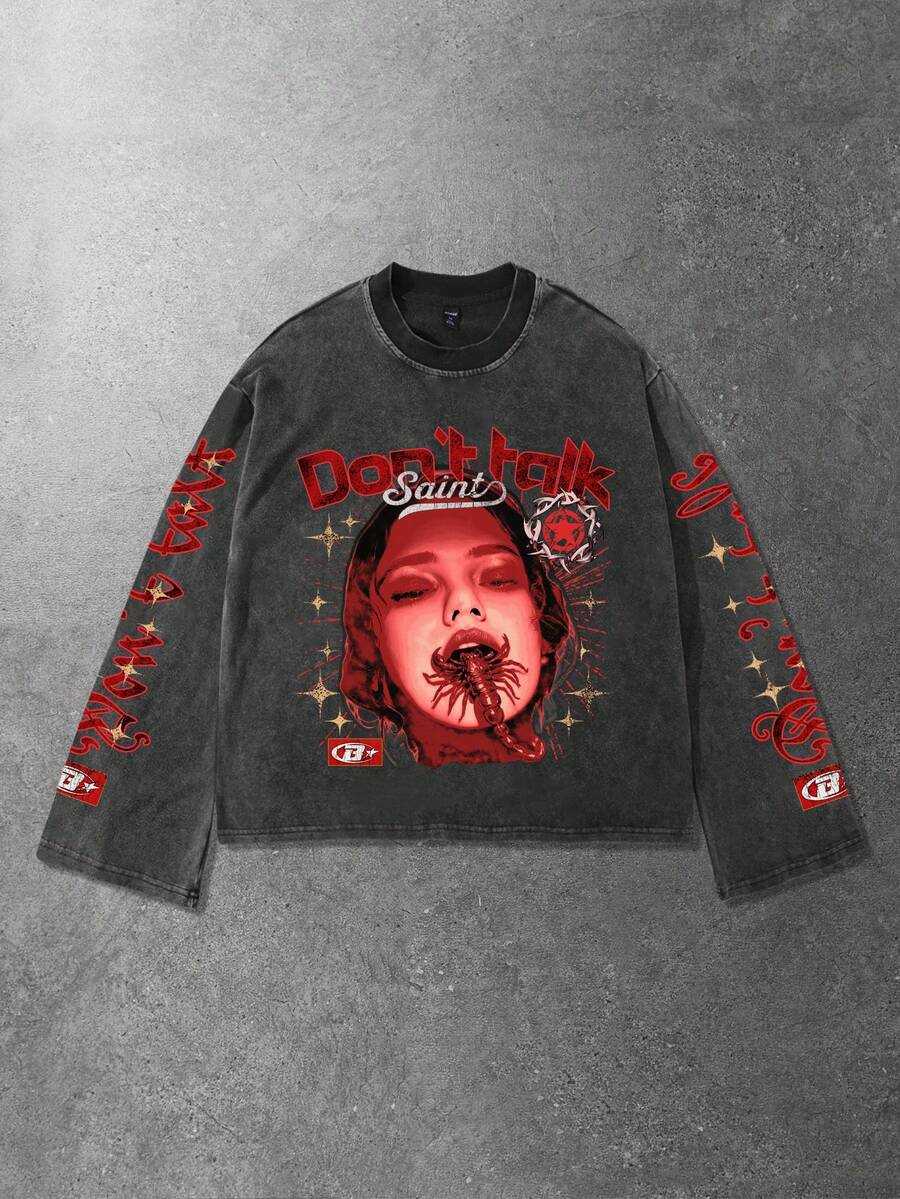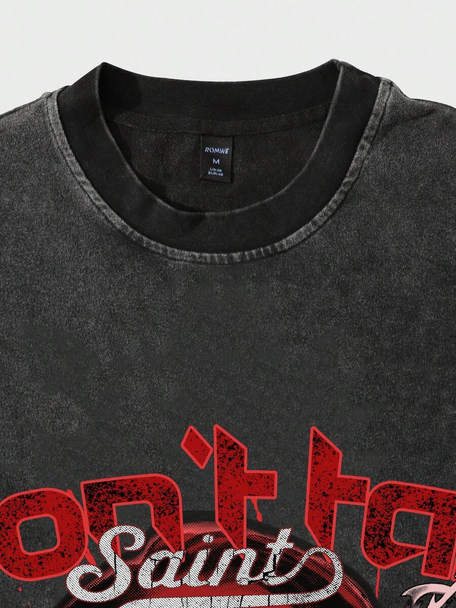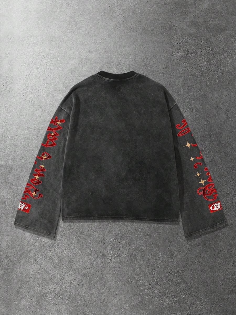 Street Life Men's Casual Crew Neck Creative Graphic Print Washed Long Sleeve T-Shirt