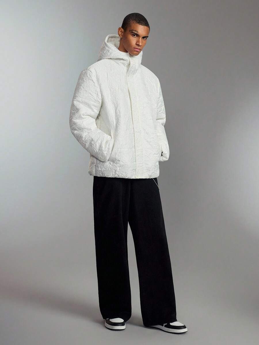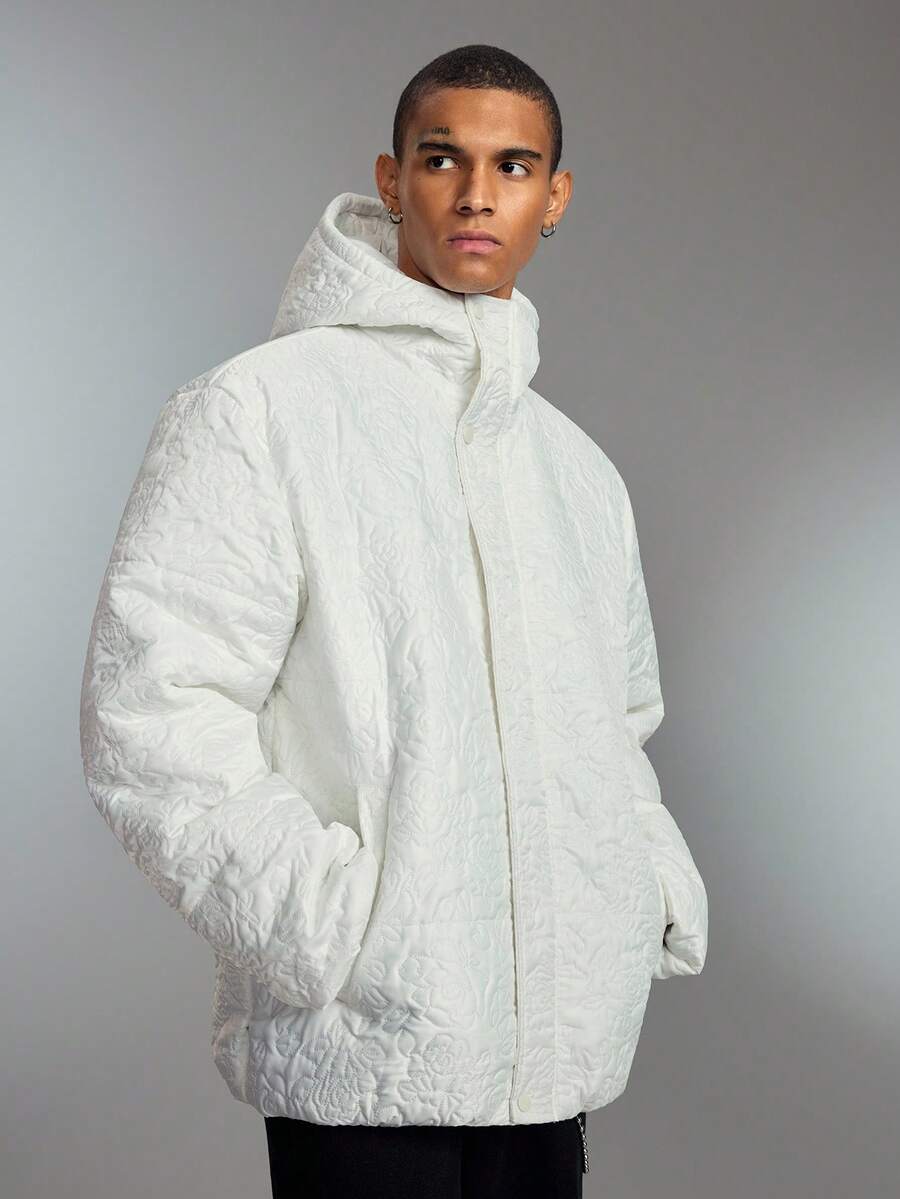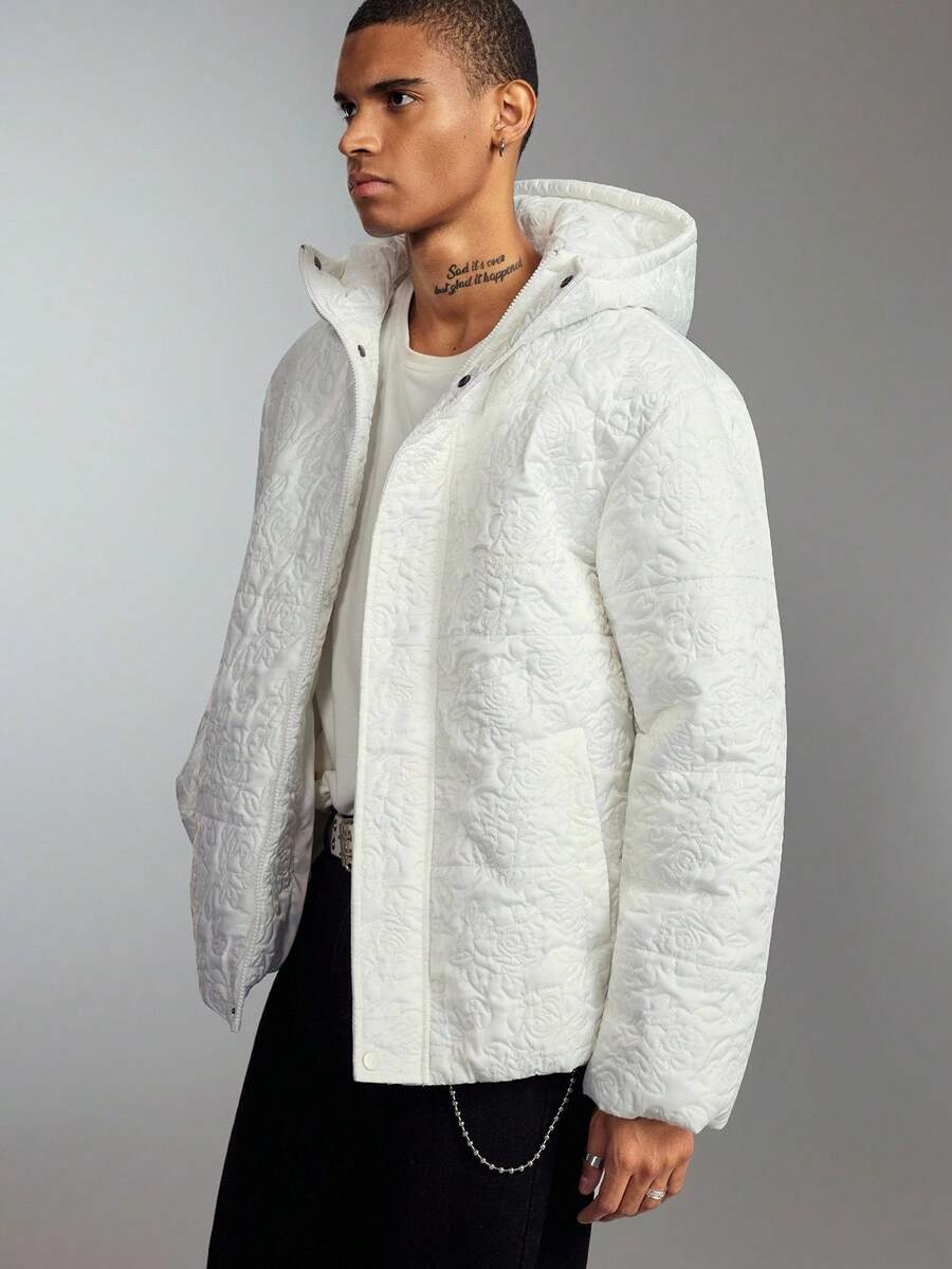 Street Life Men's Casual Embossed Hooded Zip-Up Padded Coat, Warm For Autumn/Winter