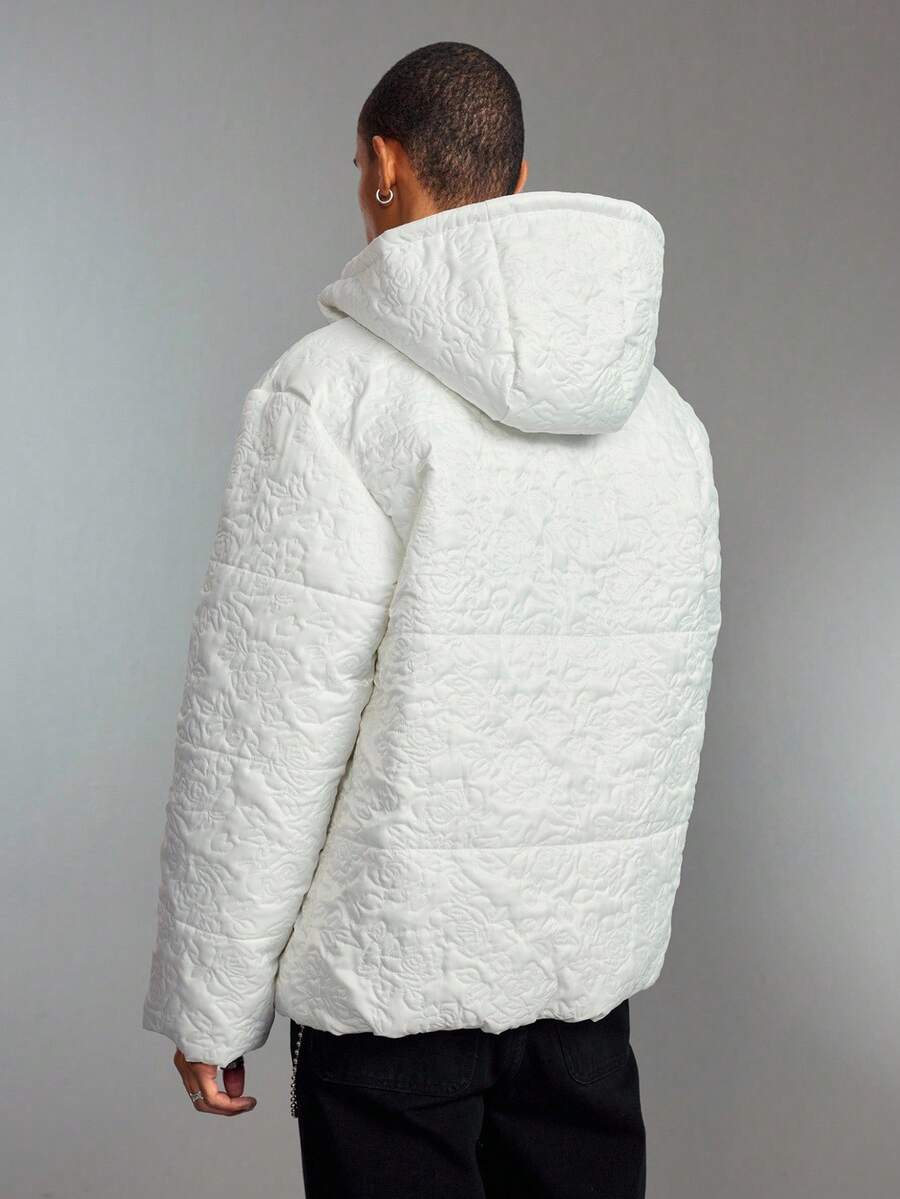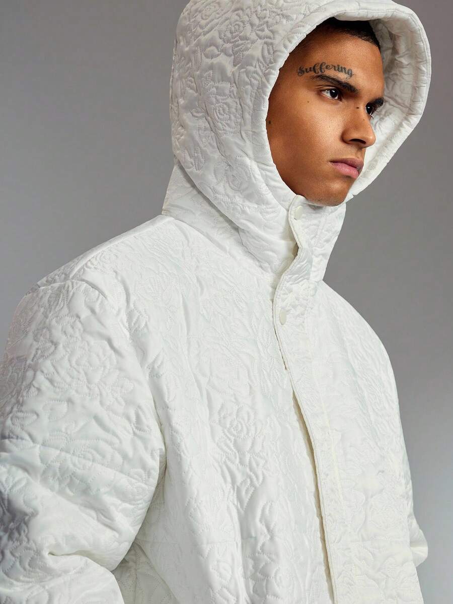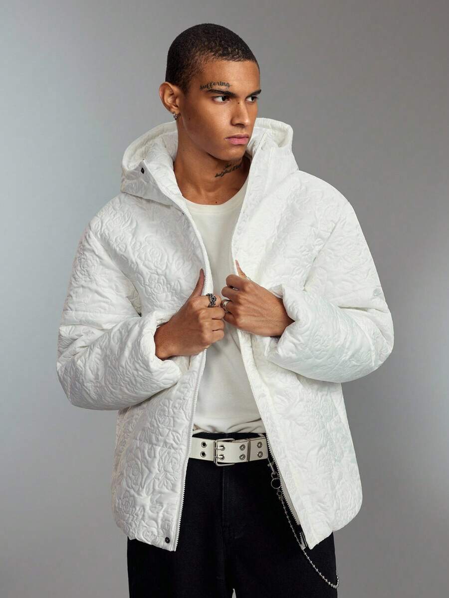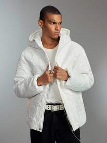 Street Life Men's Casual Embossed Hooded Zip-Up Padded Coat, Warm For Autumn/Winter