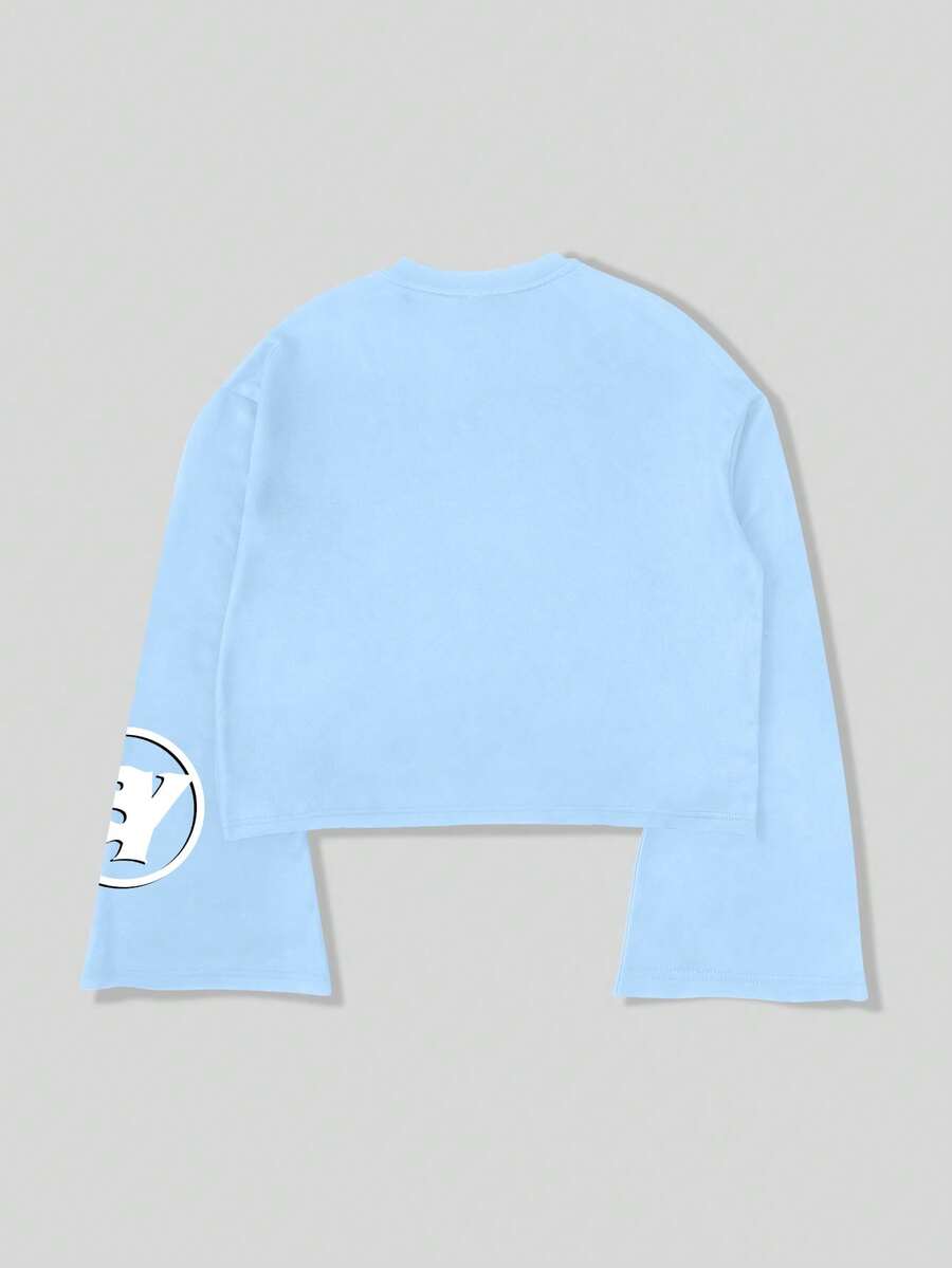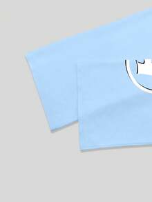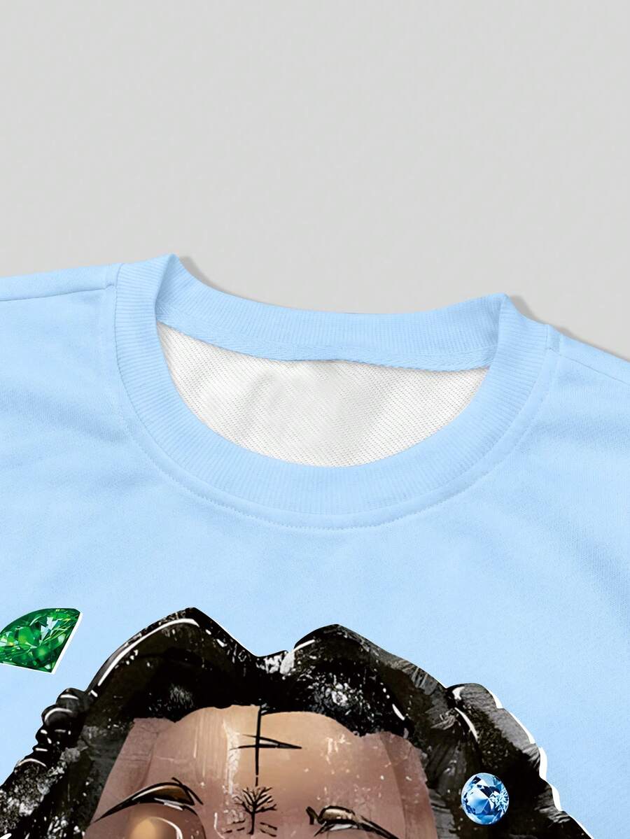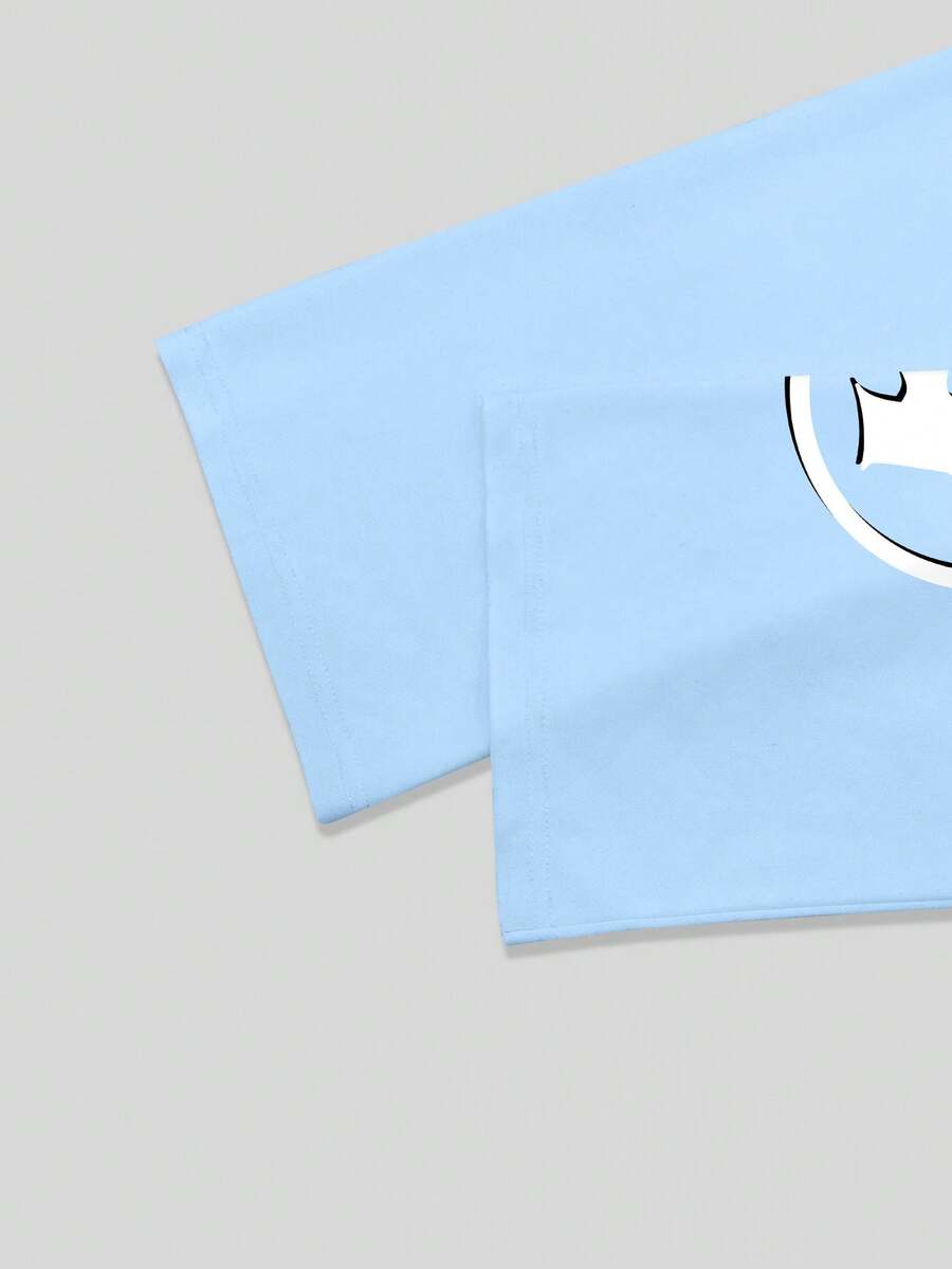 Street Life Men's Casual Fashionable Street Hip Hop Cartoon Character & Letter Print Flare Sleeve Cropped T-Shirt, Spring/Autumn