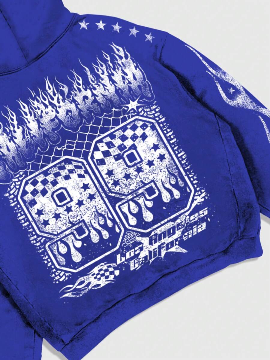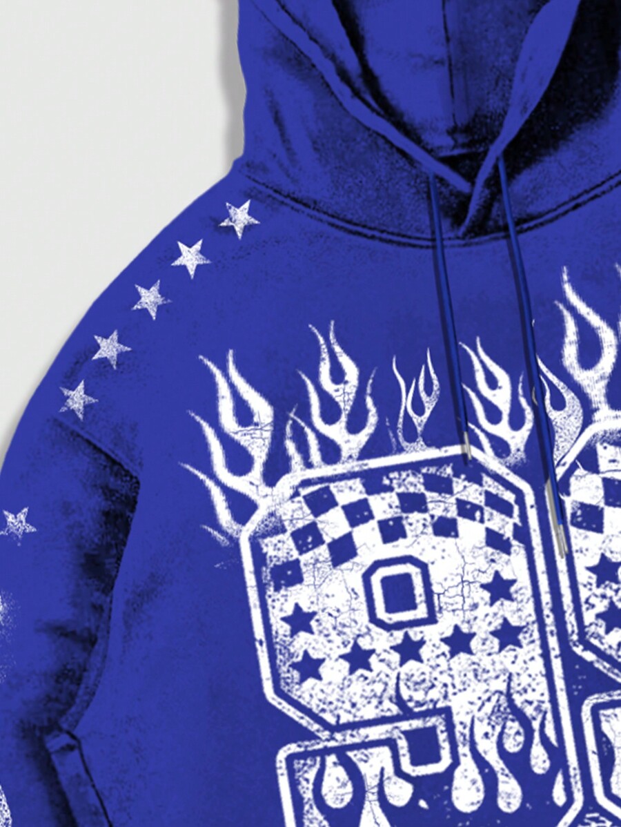 Street Life Men's Casual Flame Letter Print Thermal Lined Pullover Hoodie, Autumn/Winter